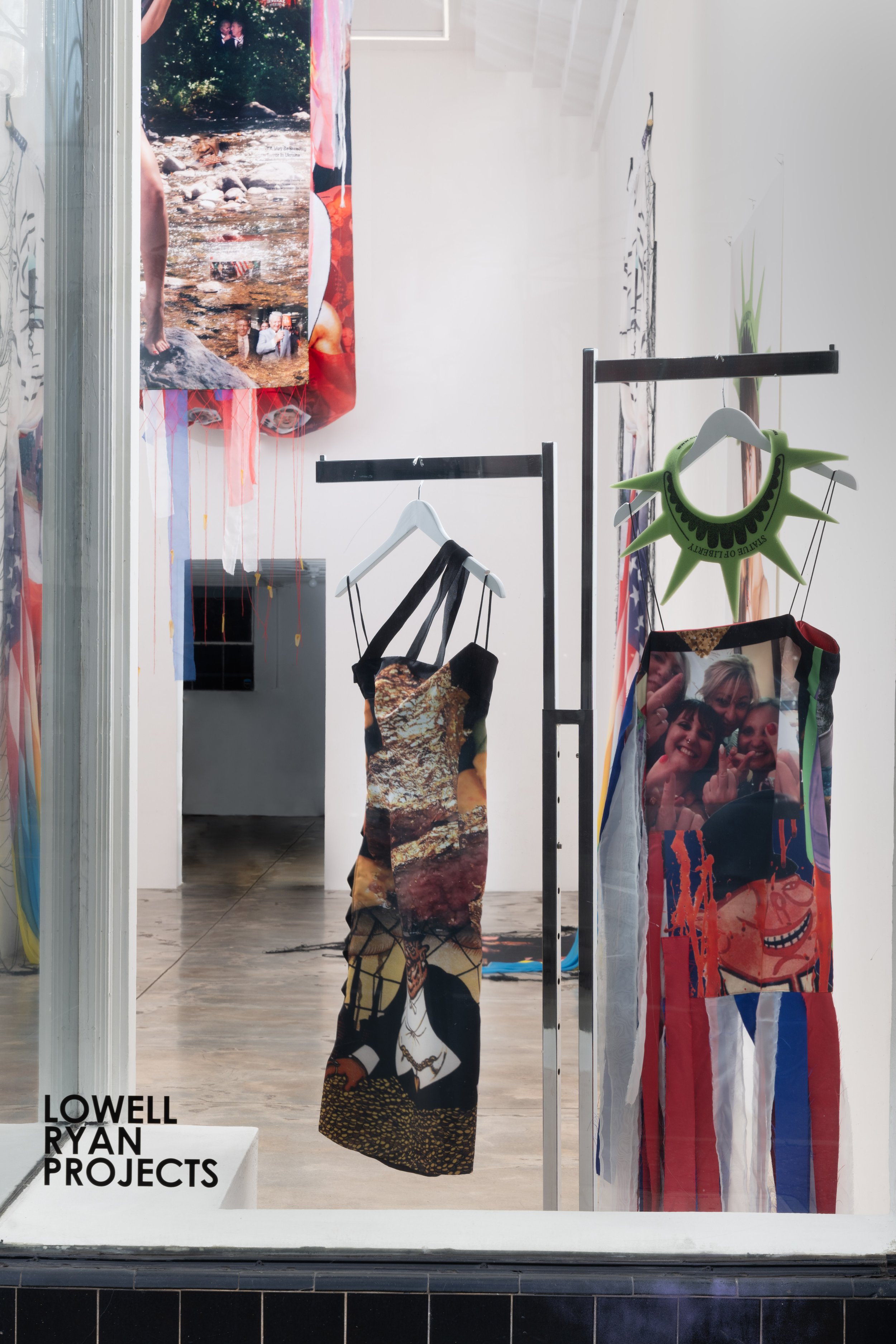 Custom dresses (duchess satin, organza, and elastic bands) foam Statue of Liberty crown, garment rack, hangers